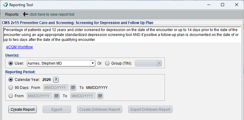- From the Reporting Tool, go to Reports > eCQMs > 2026